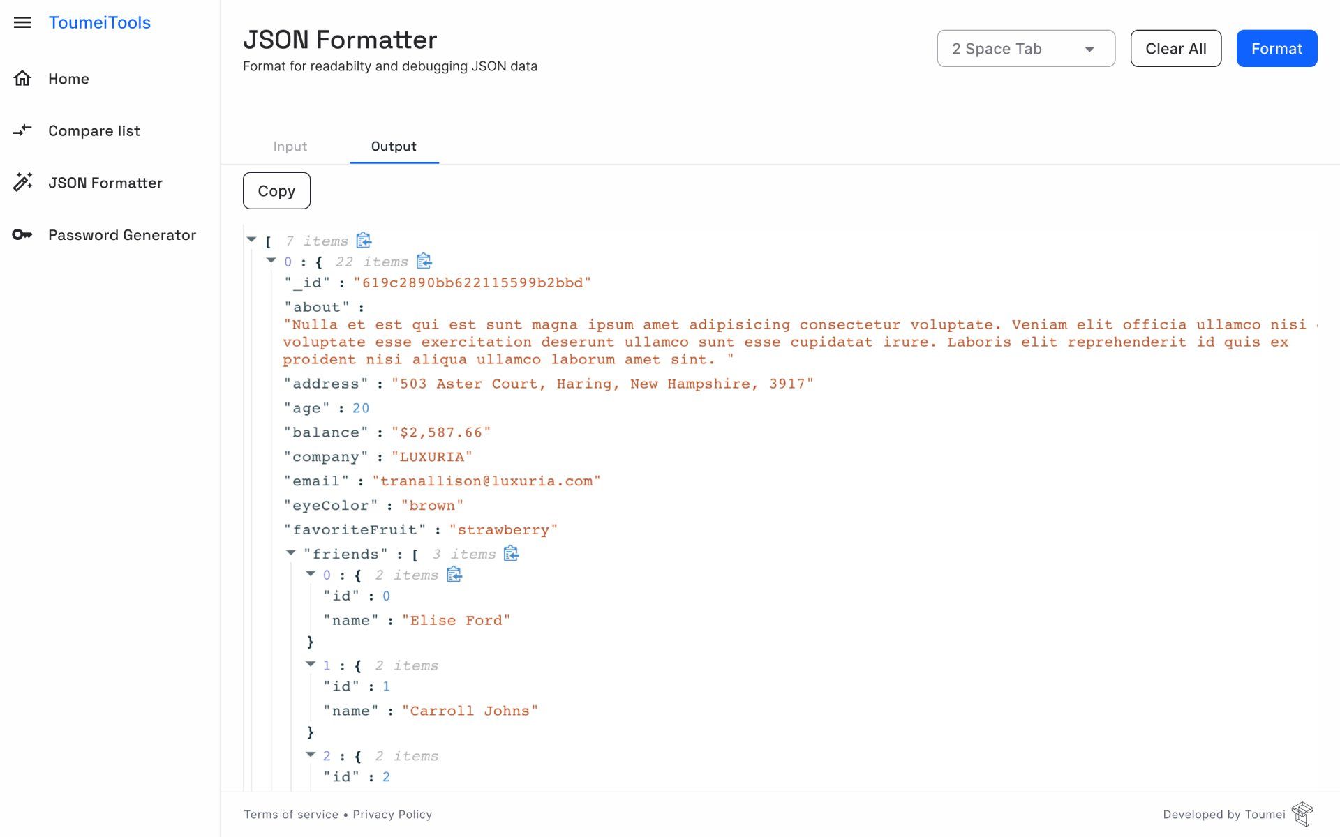 JSON files tend to have no line breaks making them cluttered and compact. Eligibility makes JSON code hard to read and thus debug, this is where the formatting application comes in.